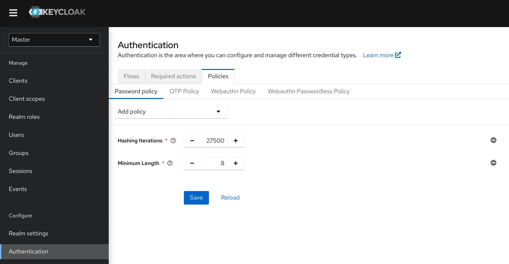 Setting a password policy