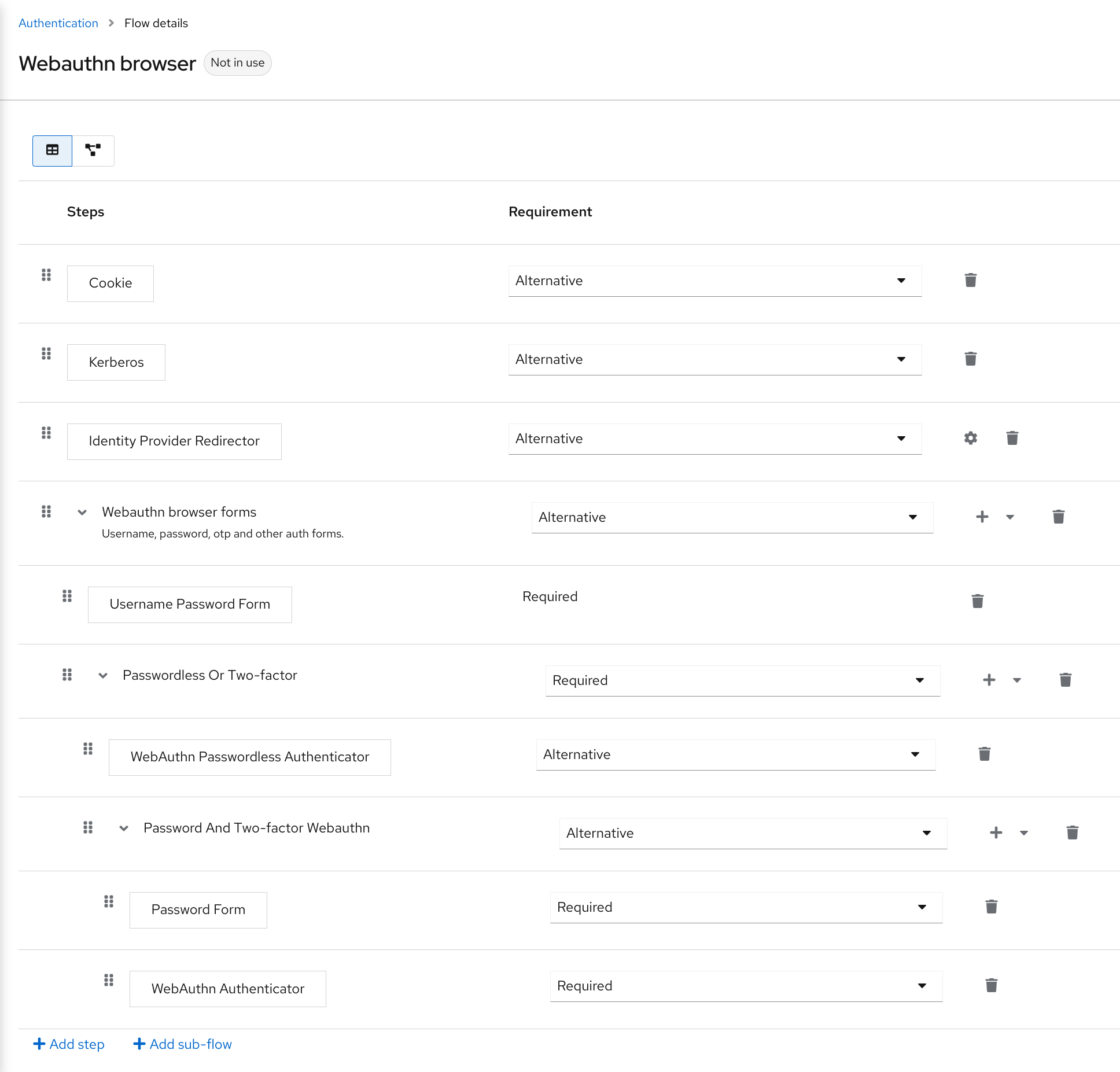$ kcadm.sh get authentication/flows/febfd772-e1a1-42fb-b8ae-00c0566fafb8 -r demorealm