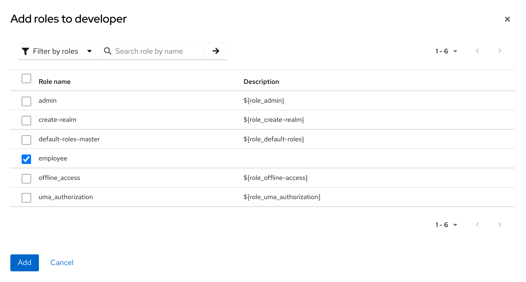 providerIdattribute tohardcoded-ldap-role-mapper. Ensure you provide a value ofroleconfiguration parameter.For example: